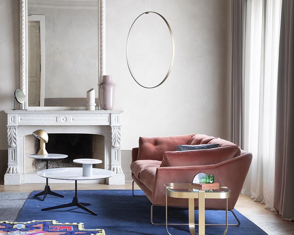 Sempre elegante ed estremamente versatile, cambia volto in base al rivestimento. Dal lusso art deco del velluto può assumere un mood mid century se declinato in tessuto neutro con piedini in legno. Decisamente contemporaneo se vestito in colori neutri con piedi in cromo nero, può virare verso lo stile pop se avvolto in una stoffa vivace.